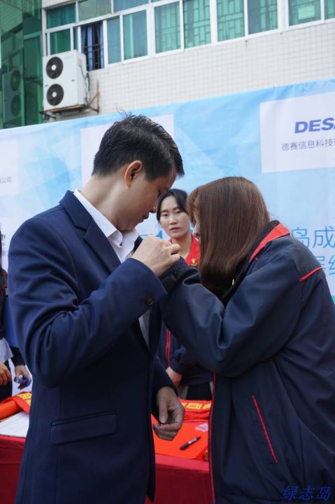 清晨绿志岛的迎宾团队已准备好礼品,人员也全部早早的就位等待宾客的到来。