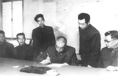 树欲静而风不止。帝国主义和一切反动派始终亡我之心不死。出生入死的先辈们为了革命而奉献一切的人民英雄,本想好好建设千疮百孔的祖国时,1950年朝鲜战争又爆发了,在国力、武器装备等没有一样对等,但唯有毛泽东维持正义的思想和全国人民维护正义的信心与力量撼天动地。最终邪不压正,迫使以美帝国主义为首的多国联军于1953年7月27日在坂门店签下了停战协定。在毛泽东主席的指导下,彭德怀元帅带领中国人民志愿军为新中国打出了军威,打出了国威,奠定了中华人民共和国的国际地位。