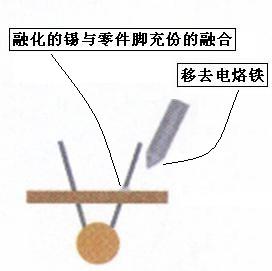 3上焊锡适量:根据焊点大小蘸取的焊锡量足够包住被焊物.形成光亮圆滑的焊点一次上焊锡不够可再补上.但须待前次焊锡被一同容化之后移开烙铁头.有的人焊接时象燕子垒窝一样往上堆焊锡.结果焊了不少焊锡就是不牢.