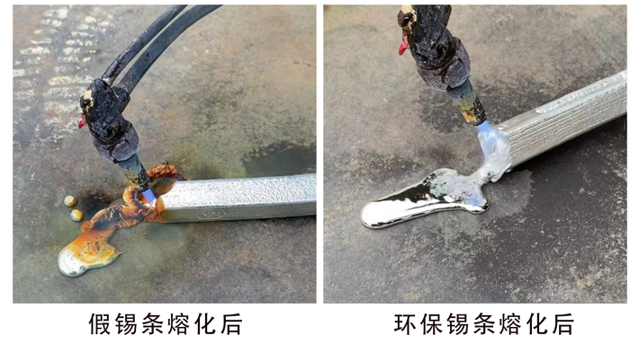 假锡条它主要是是由锌、钾、锑、铁、镉等几种金属用特殊方法做出来的混合品,这种合金条做出来后的外观和无铅焊锡条几乎一致,外观都为银白色的金属,如果没有丰富的经验,仅用肉眼是非常难以分辨的。下面我们总结几种方法帮助大家分辨假锡:
