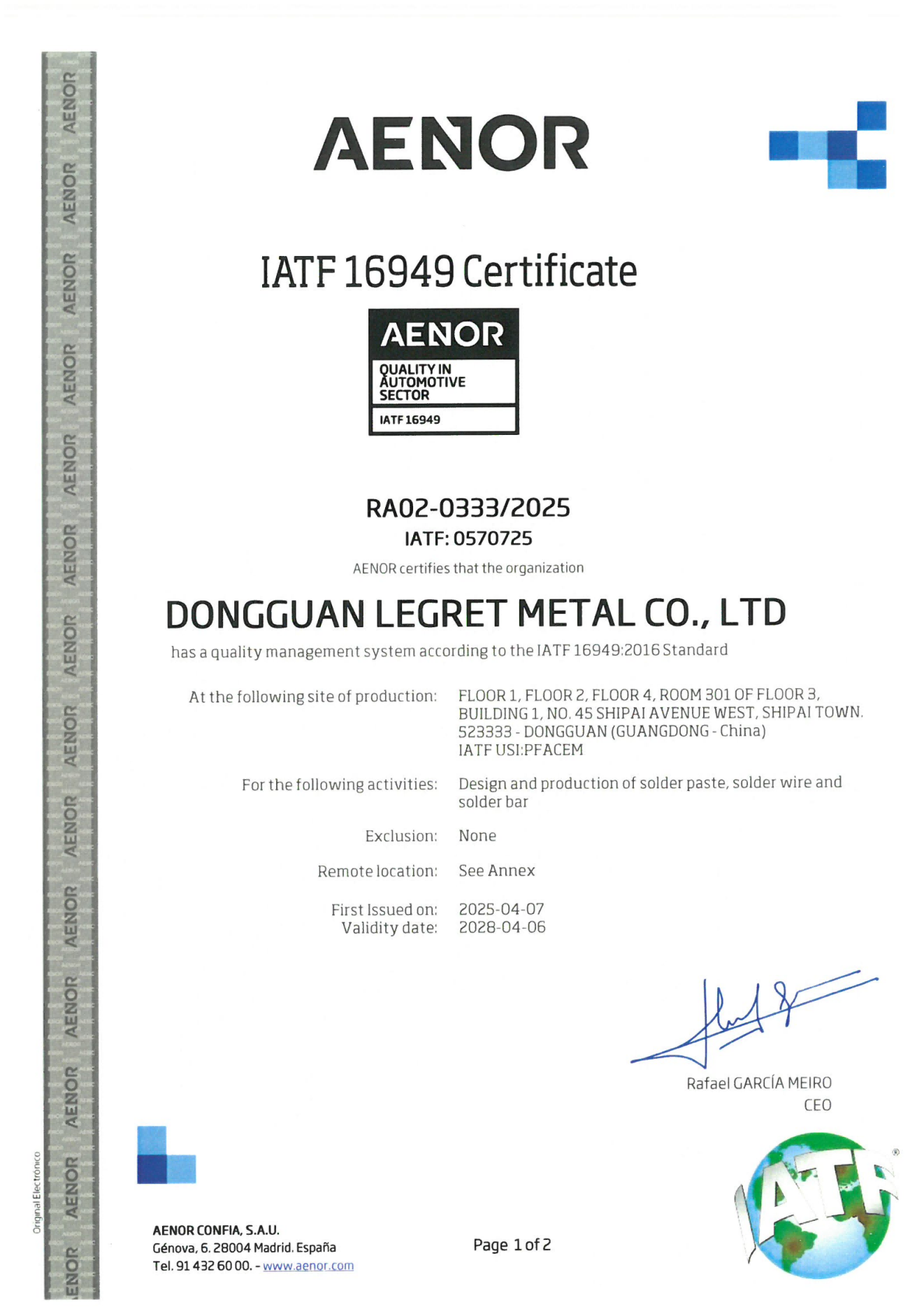 这张全球汔车行业公认的“品质通行证”,不仅标志着公司研发、生产、服务体系全面接轨国际标准,更意味着我们已具备为全球汽车客户提供高可靠性产品的硬核实力。